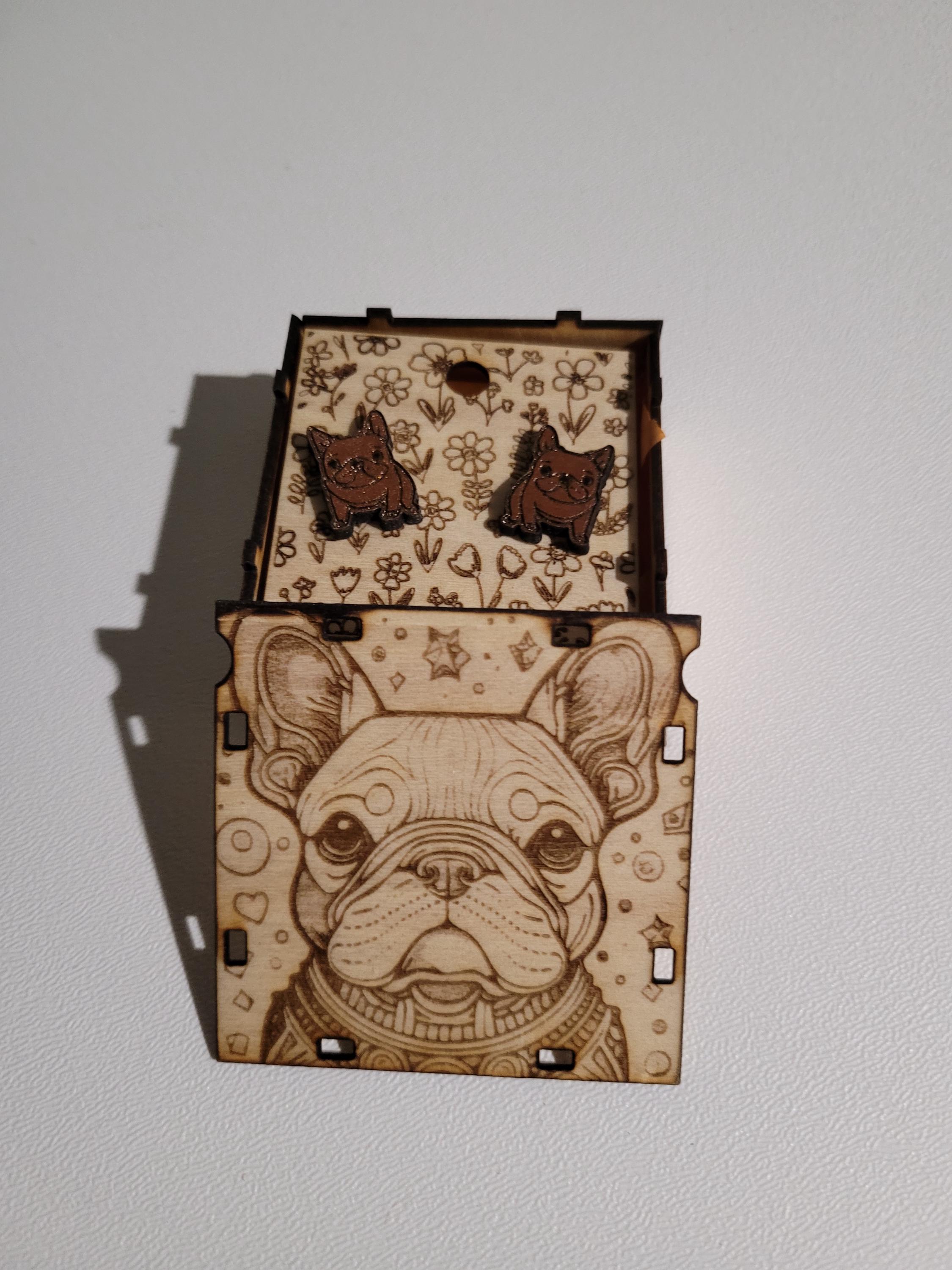 Treat the dog lover in your life to a pair of adorable French Bulldog earrings—the perfect gift for anyone who loves these playful, loyal companions! These earrings are laser cut from wood and hand-painted with meticulous attention to detail, ensuring each pair is both unique and charming.