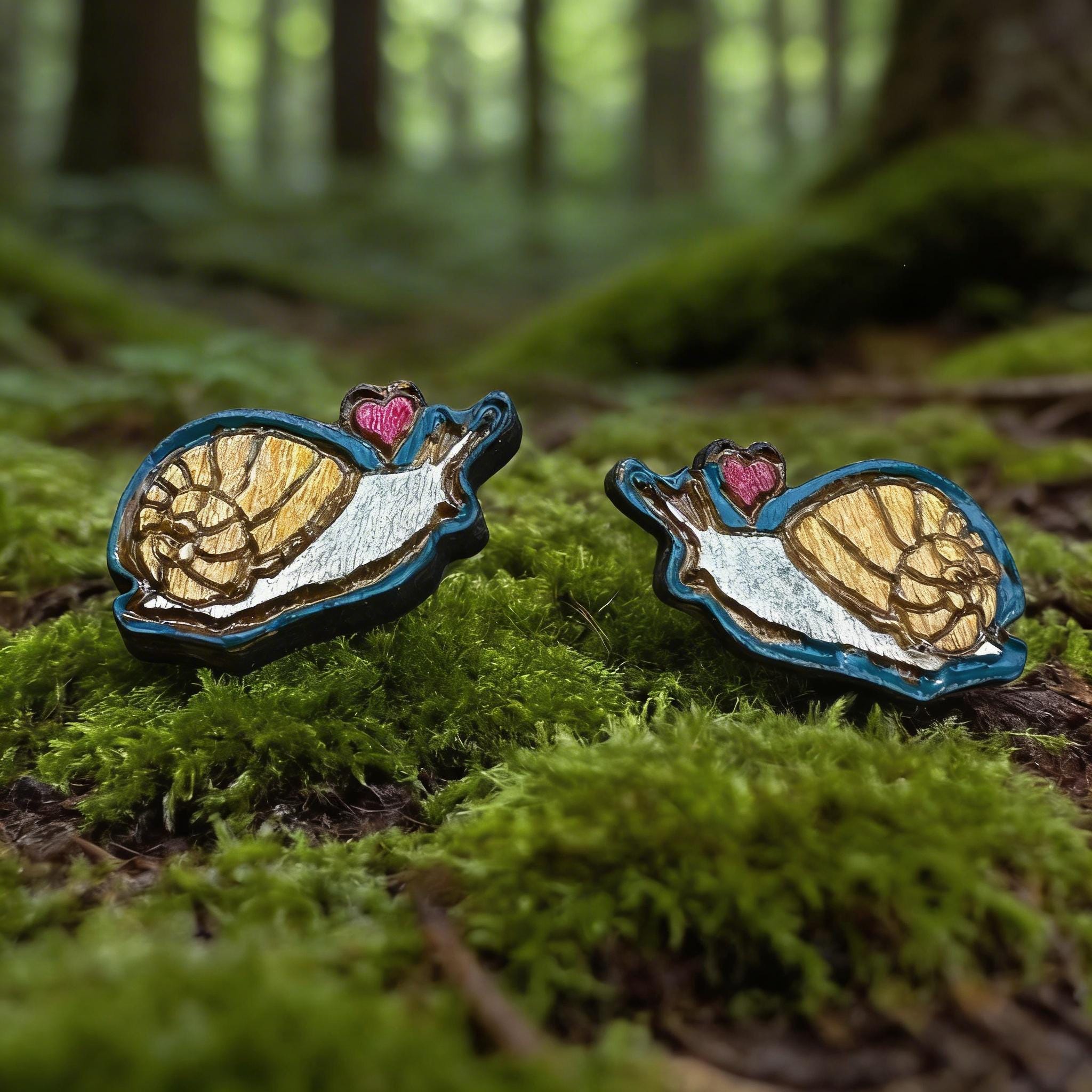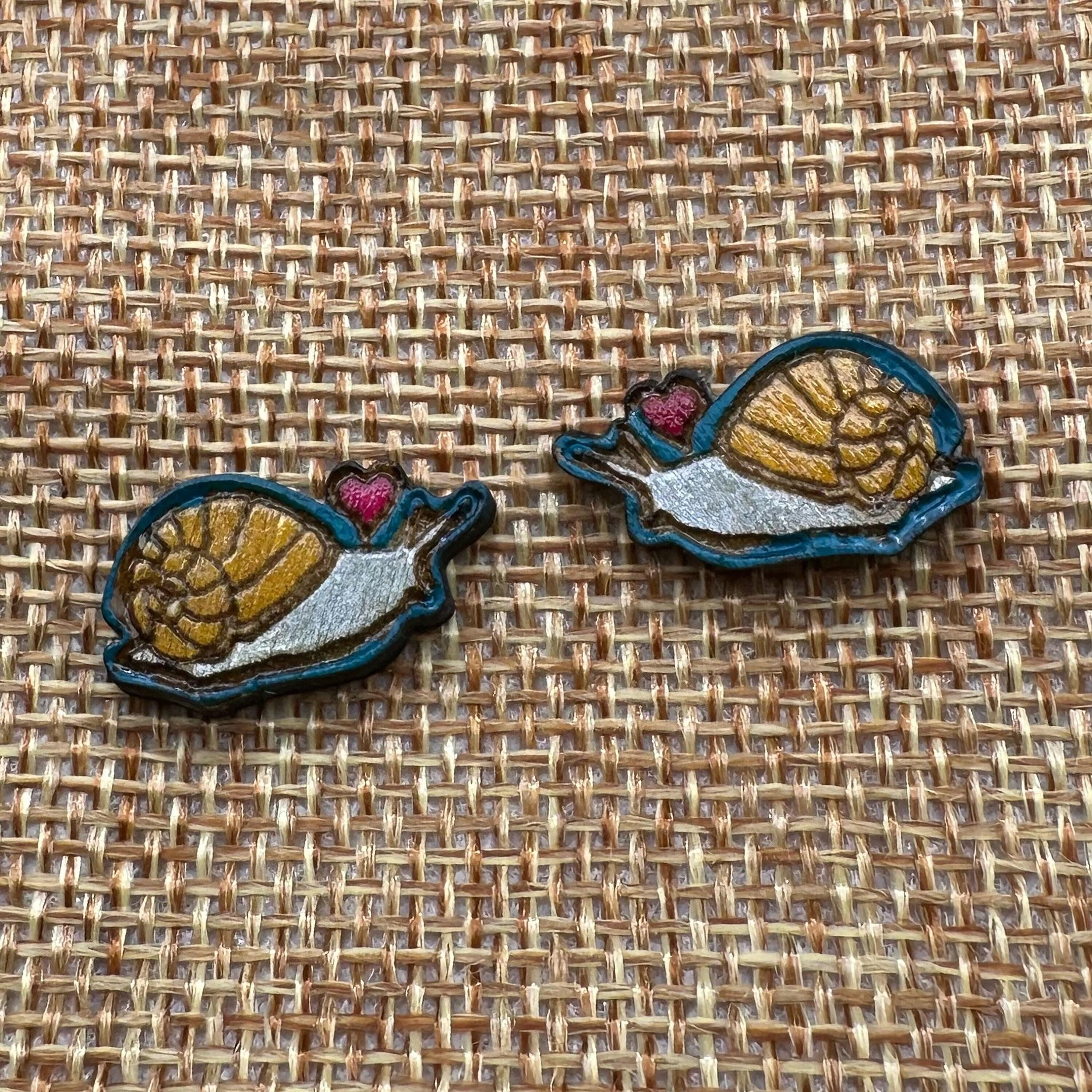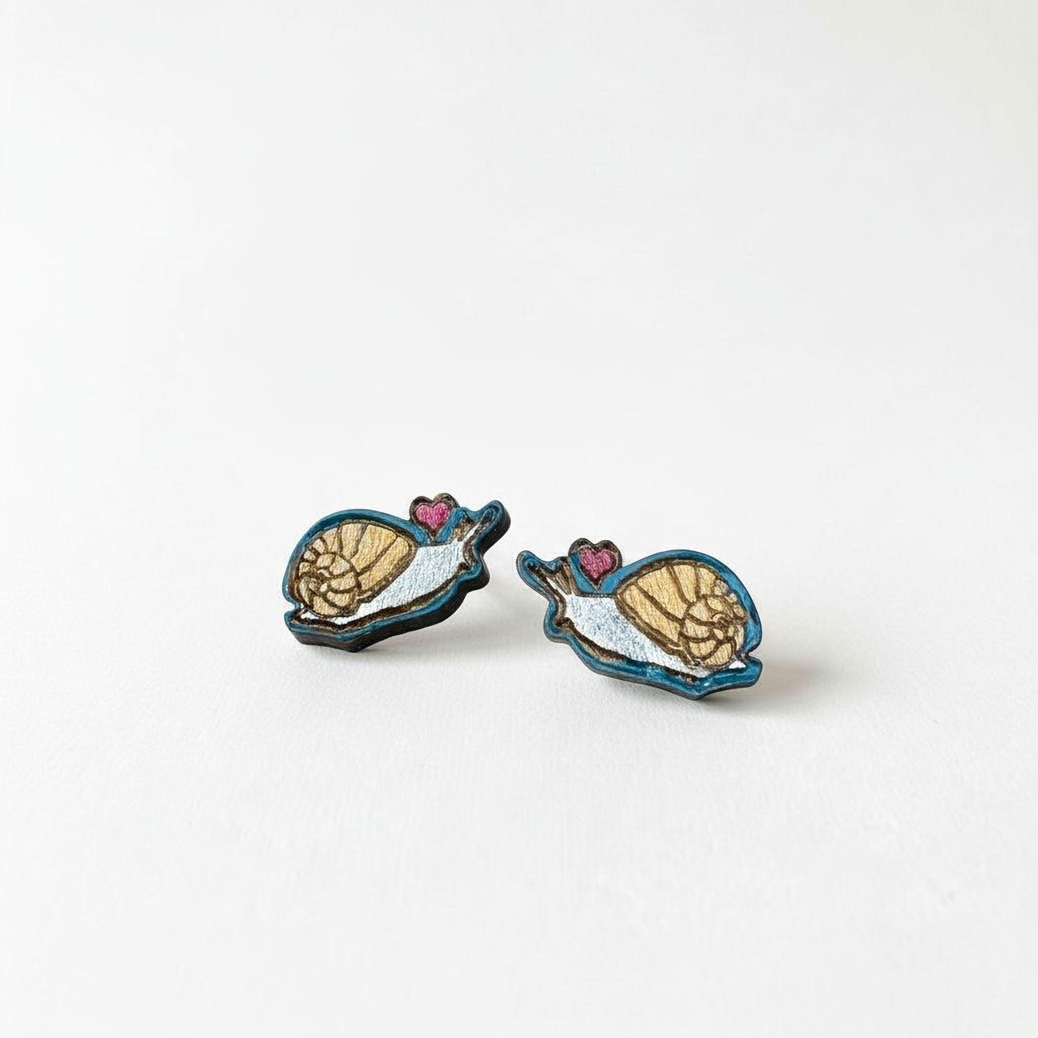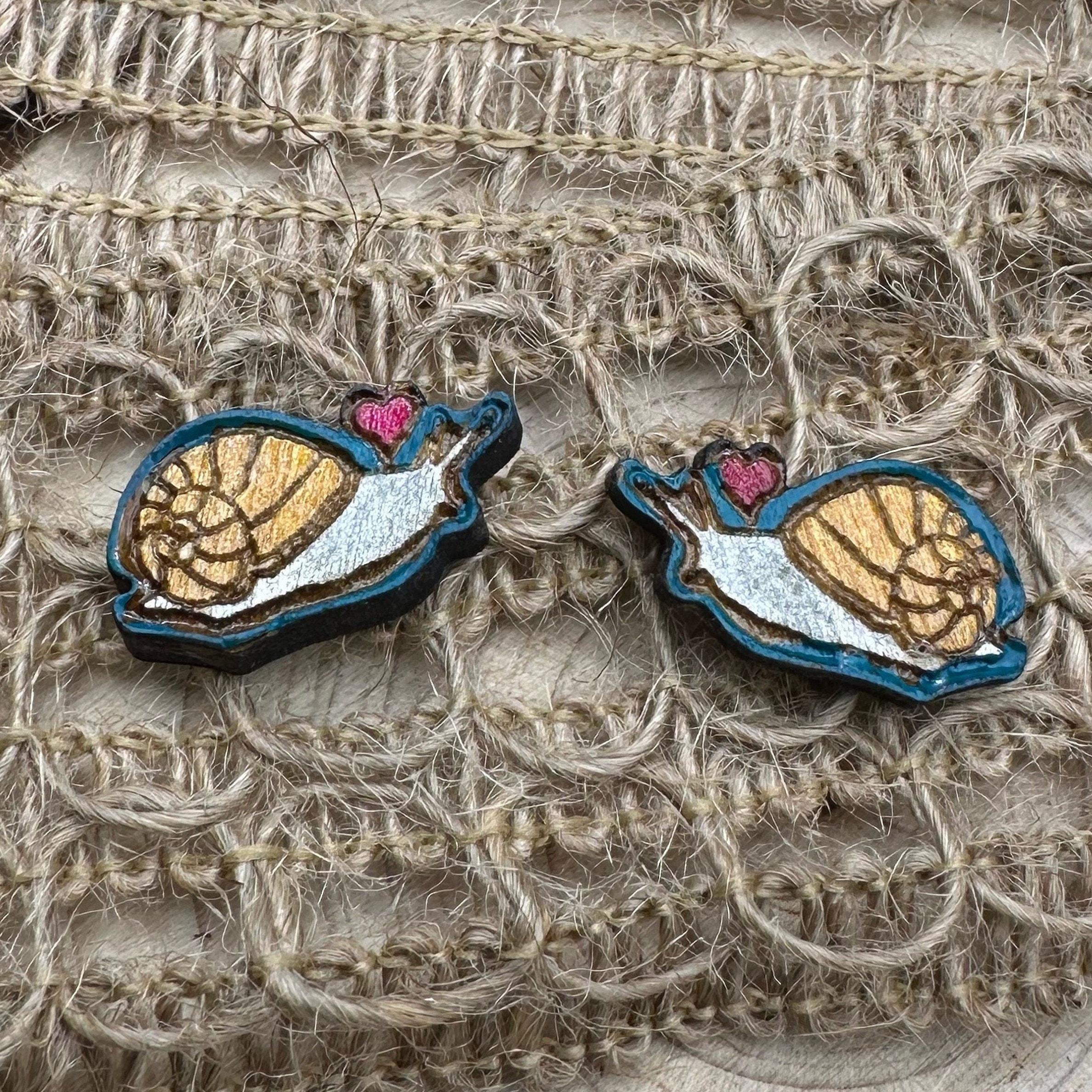 Embrace the gentle beauty of nature with these hand-painted snail stud earrings, a perfect gift for any nature lover. Crafted from eco-friendly American basswood, each pair showcases delicate pink heart details that add a whimsical touch to your everyday style. These artisan-crafted earrings blend sustainable materials with laser-cut precision to celebrate woodland charm in a unique and thoughtful way.
