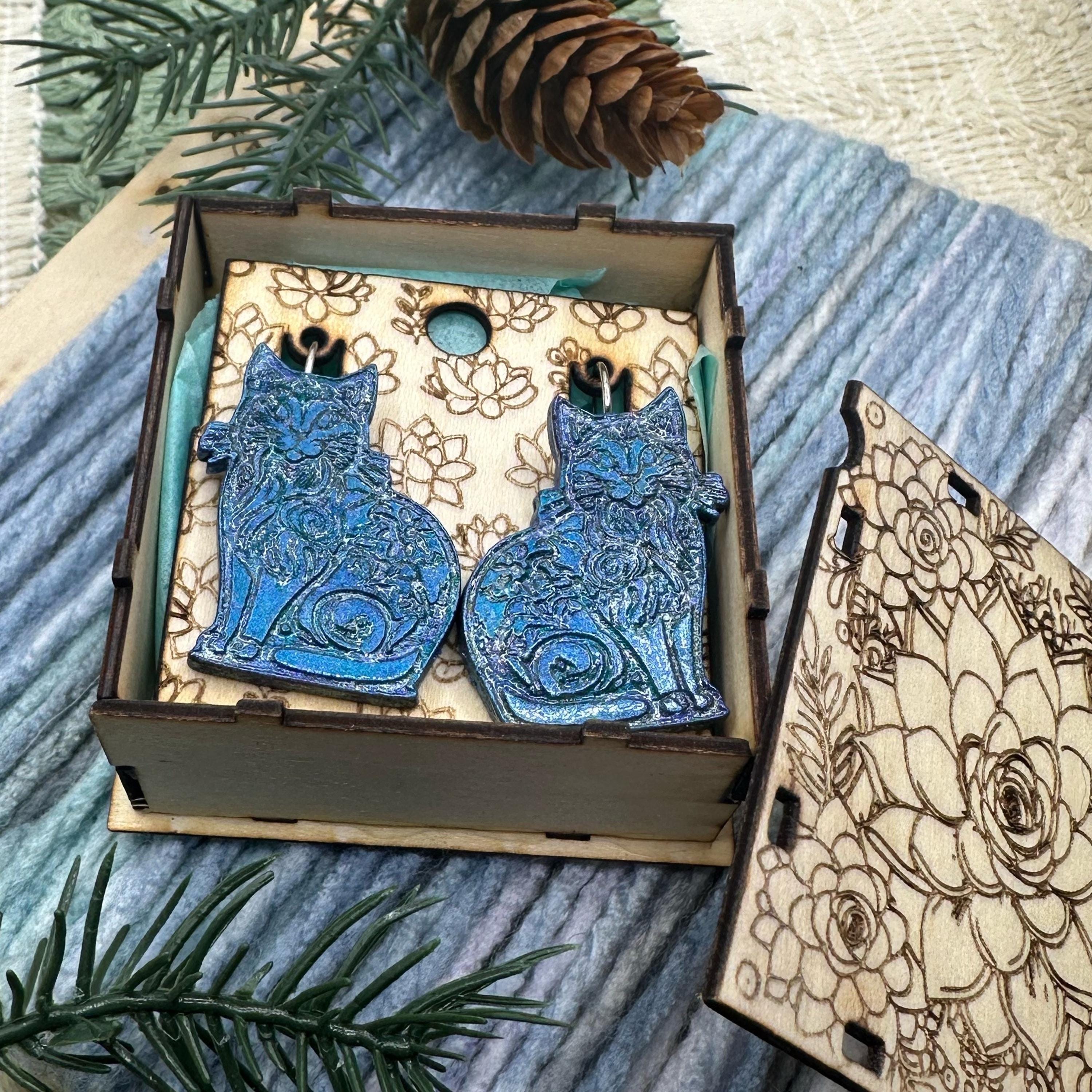 These unique blue cat earrings make a perfect gift for cat lovers or anyone who appreciates whimsical, handcrafted accessories. With their vibrant finish and customizable options, they’re sure to stand out in any jewelry collection!