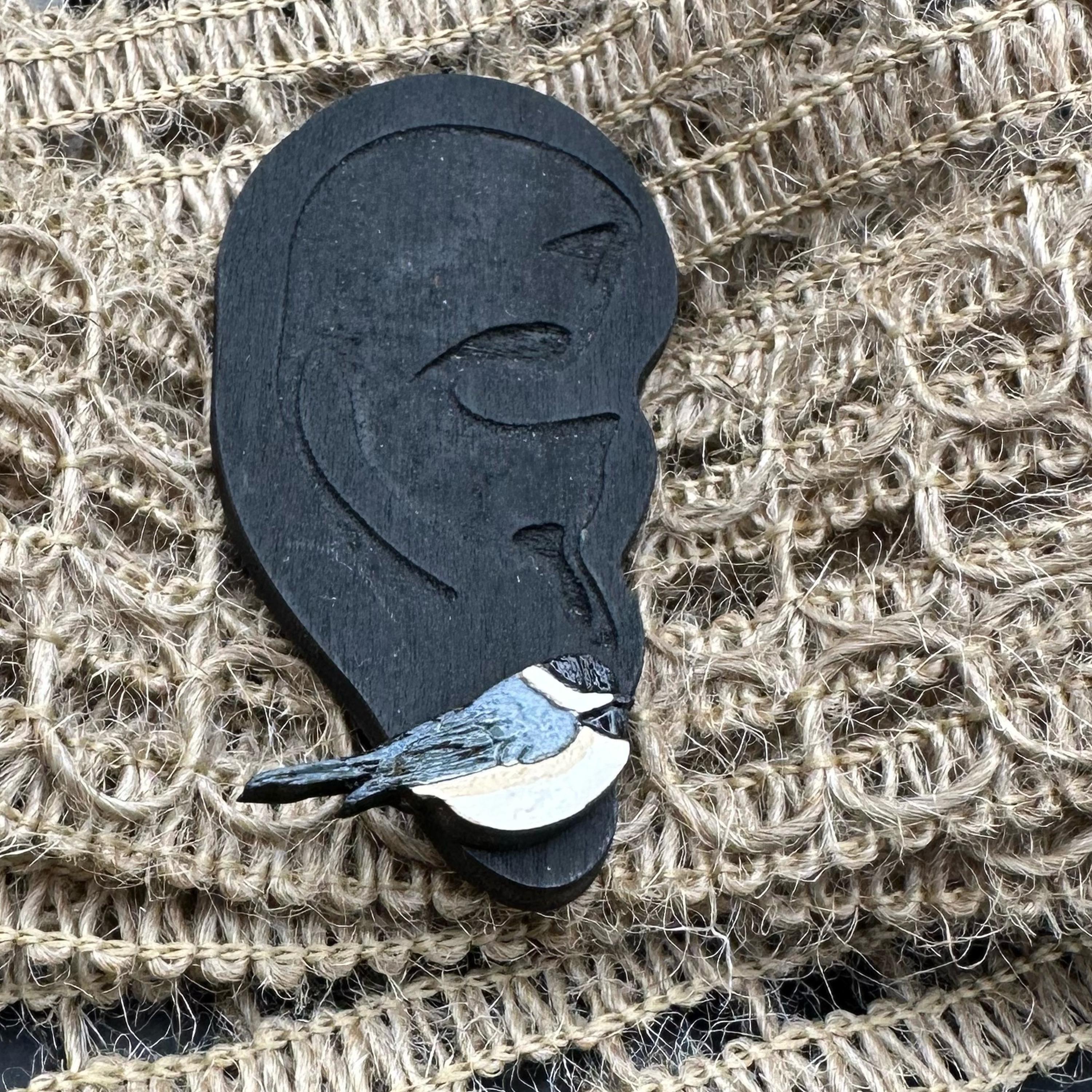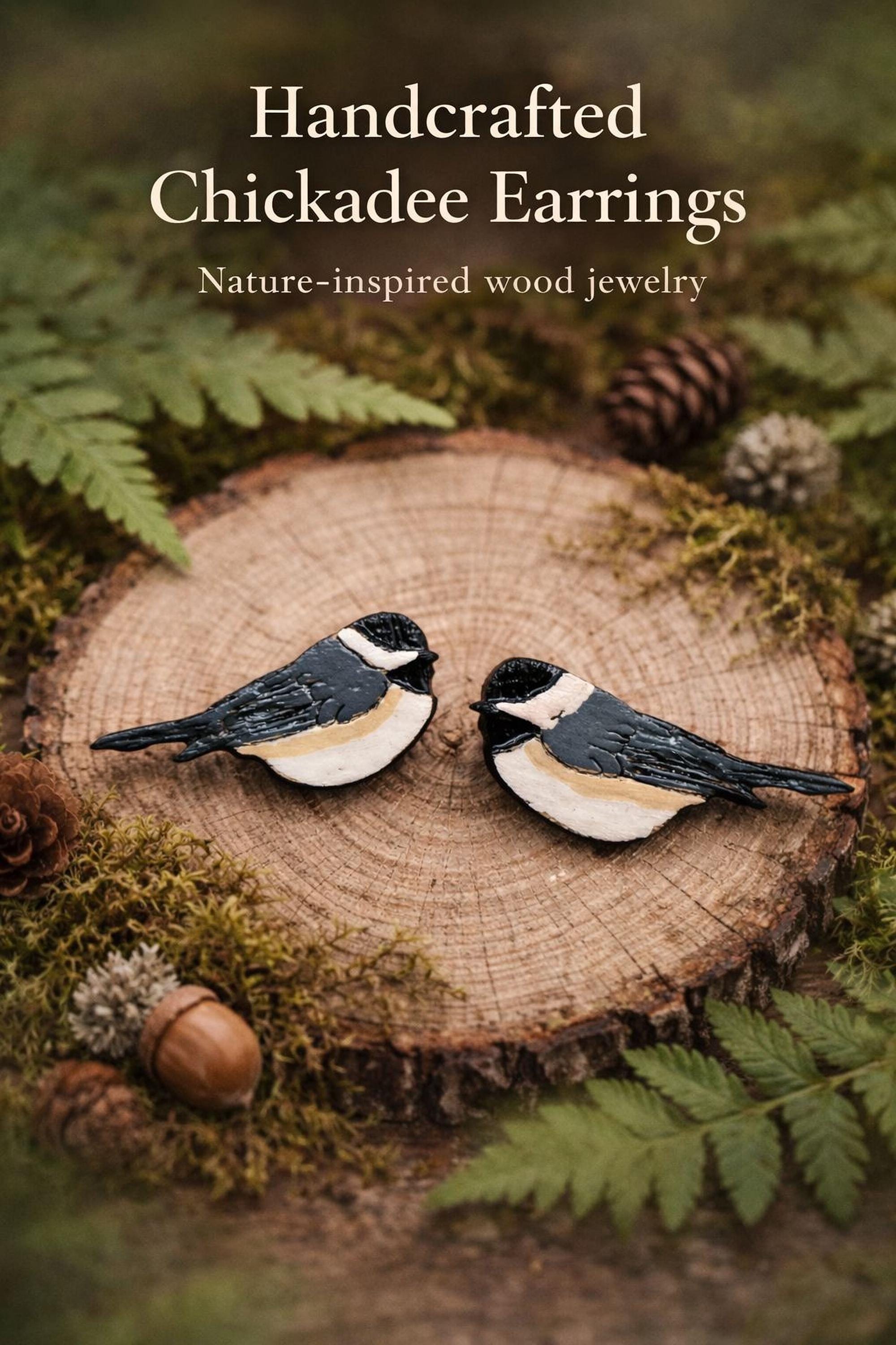 These charming chickadee earrings are hand-drawn by me, then laser cut from eco-friendly American basswood and carefully hand-painted to capture the sweet and curious nature of these beloved backyard birds.
