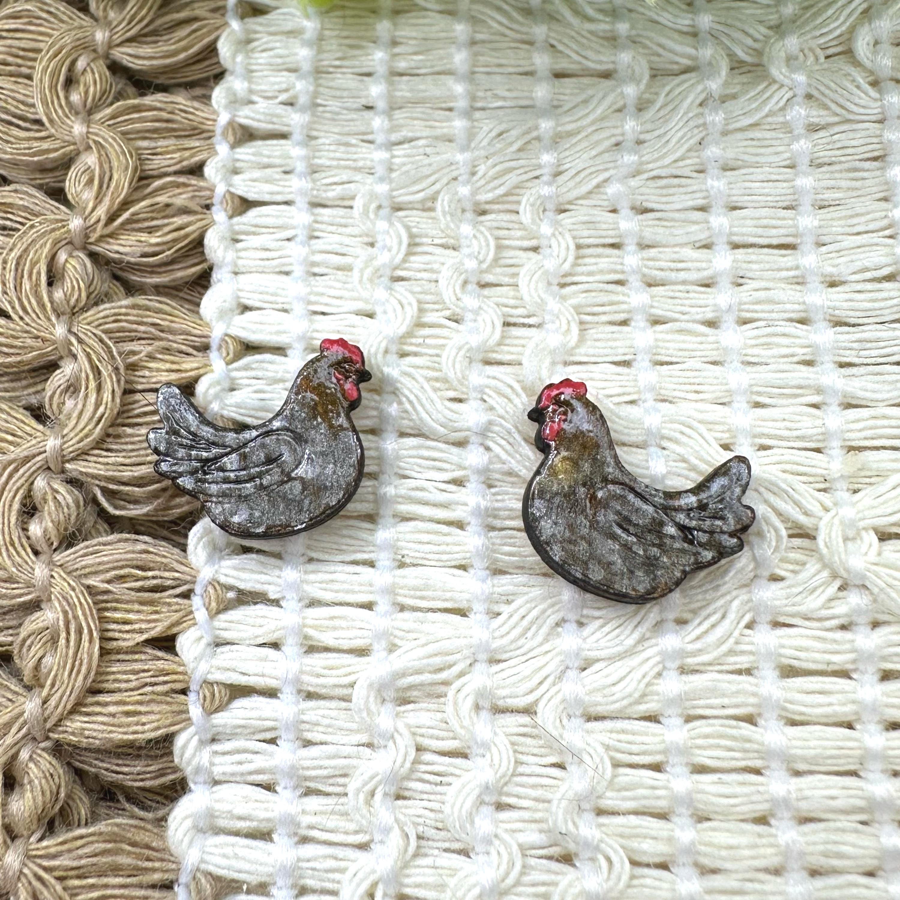 Choose matching chickens or mix it up with two different styles—just like your flock. Each pair is laser cut from lightweight wood and hand-painted to resemble your real birds, down to feather patterns, colors, and comb style.