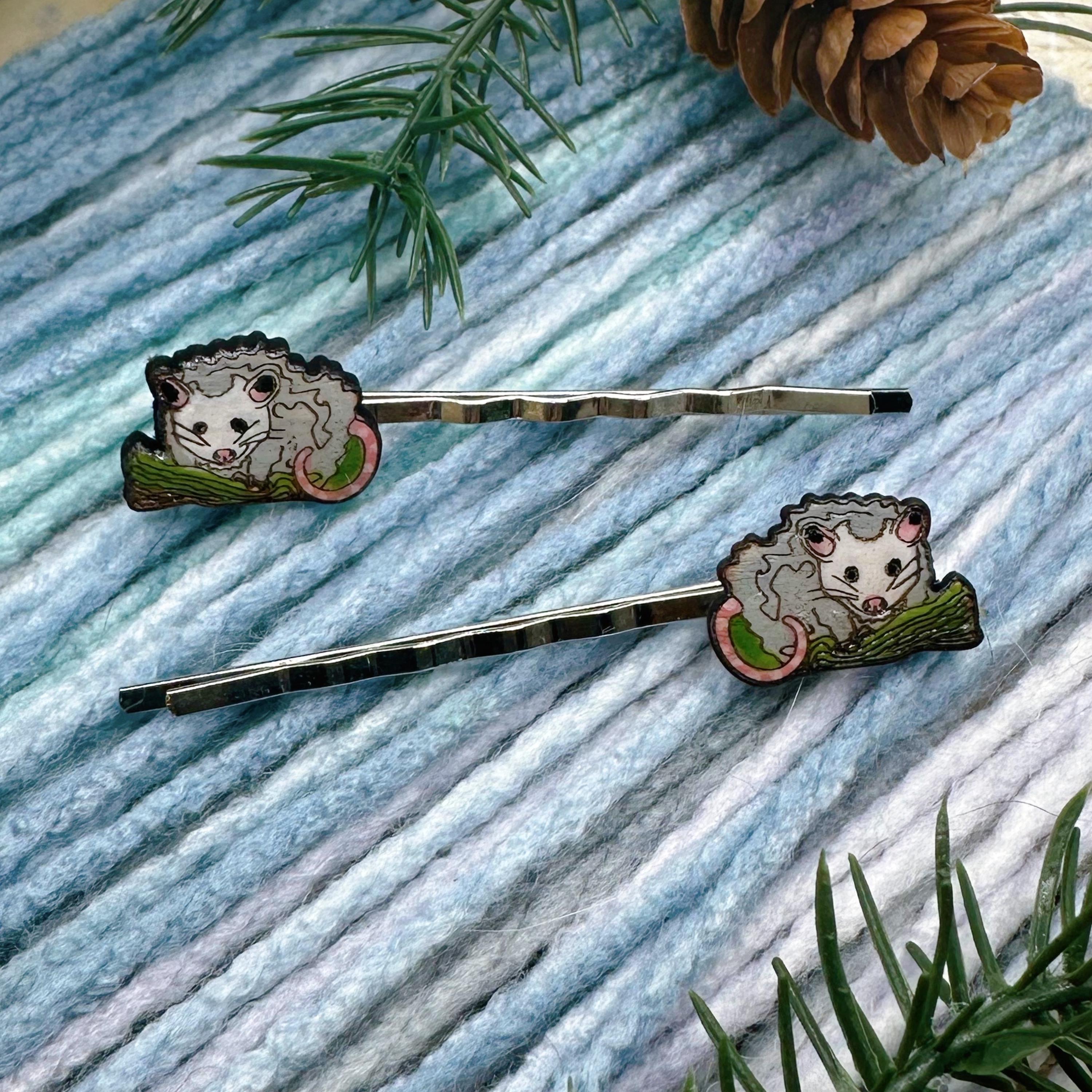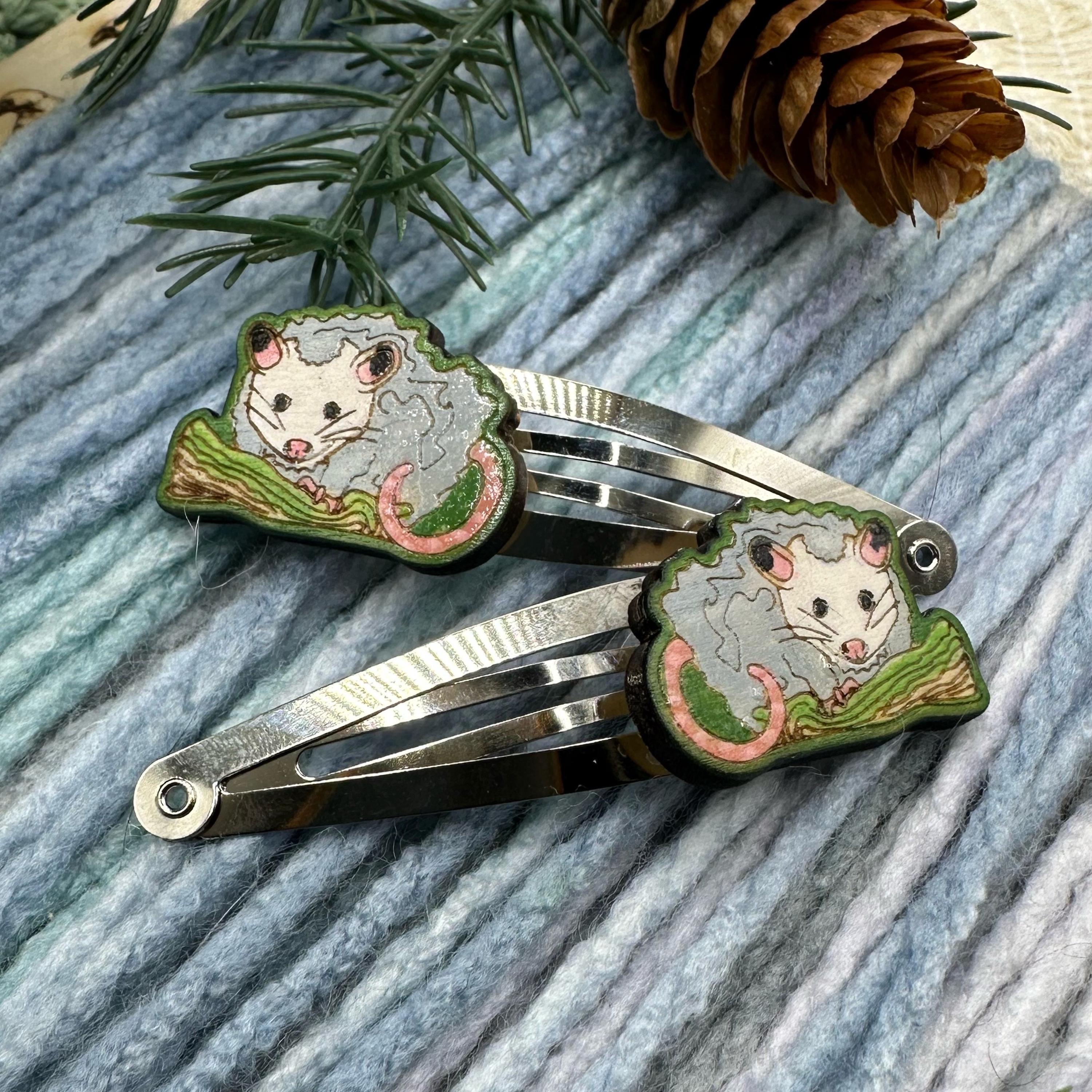 One of my most polarizing creations- people seem to either love opossums or hate them. Personally, I have a soft spot for underappreciated things. These little guys were inspired by a critter I met at my local wildlife rescue, hand drawn on my iPad, laser cut from American basswood, and hand-painted and sealed. They are small and light, but are sure to be a conversation starter. Wear them with pride and everyone will share their opinions on opossum (s?) with you and probably some fun stories too. They come in a woodland themed wood box and on a cute card made from recycled materials.