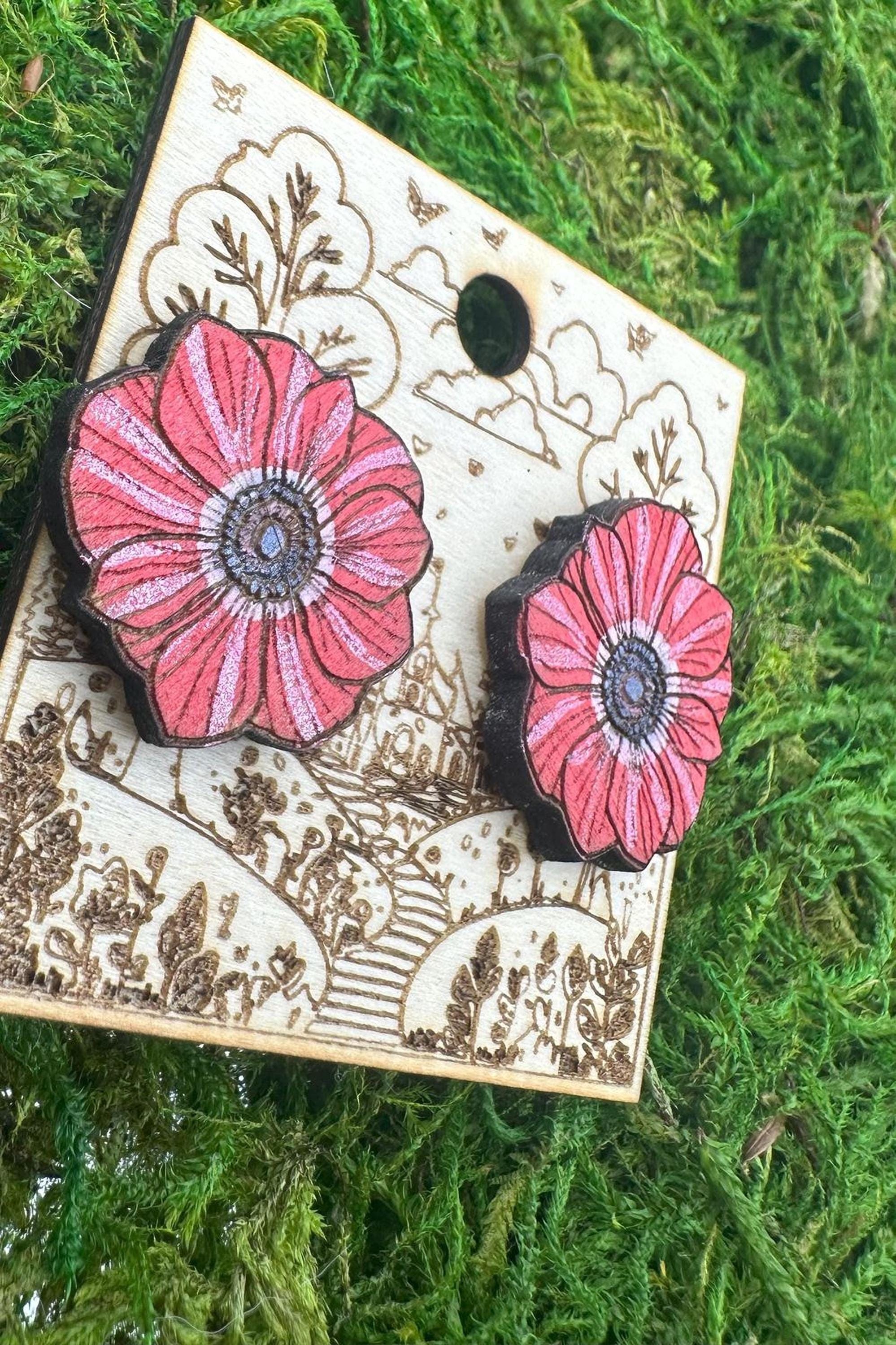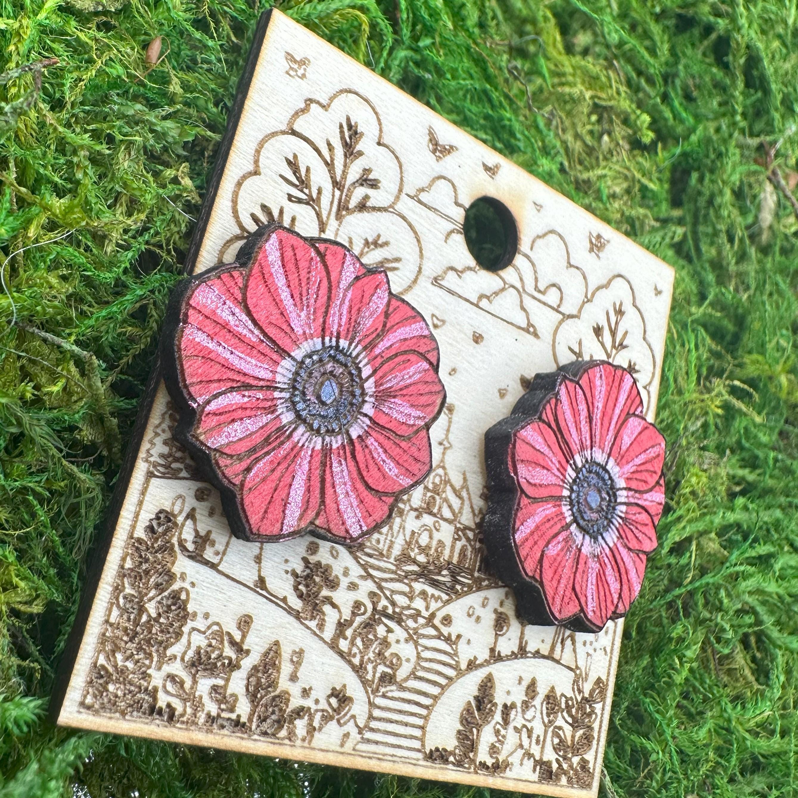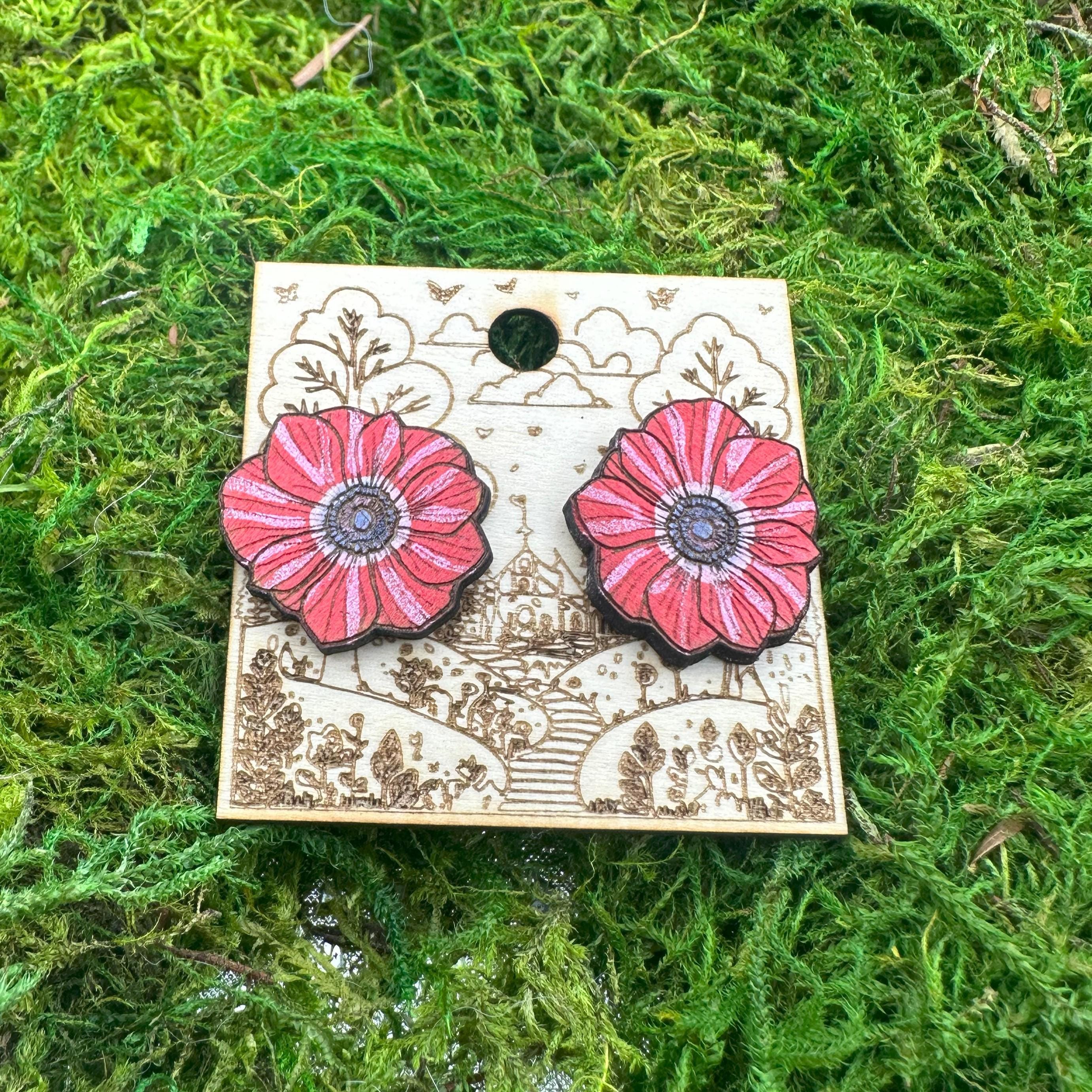 Step into a world of vibrant nature with these red flower earrings, expertly crafted to bring a bold cottagecore charm to your everyday look. Inspired by botanical beauty and laser cut wood artistry, each pair captures the essence of a blooming garden in miniature form. Designed for floral garden gift seekers and lovers of nature-inspired statement jewelry, these earrings blend vivid color with eco-friendly craftsmanship.