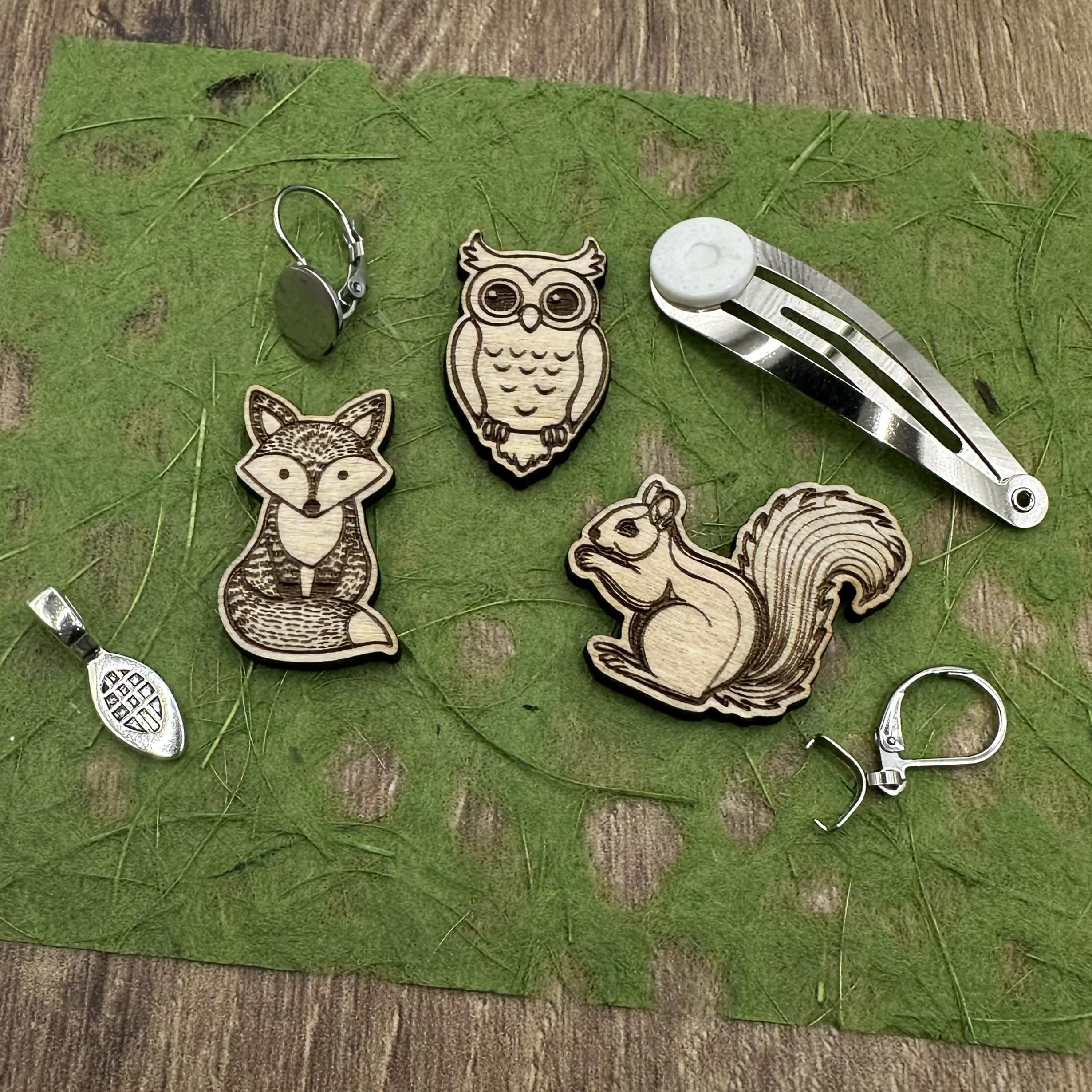 Bring a touch of the forest to your next project with these tiny, detailed animal wood blanks! Each design is laser cut and engraved from sustainable American basswood, featuring clean edges and fine line detail—perfect for earrings, crafts, scrapbooking, or miniature jewelry making.