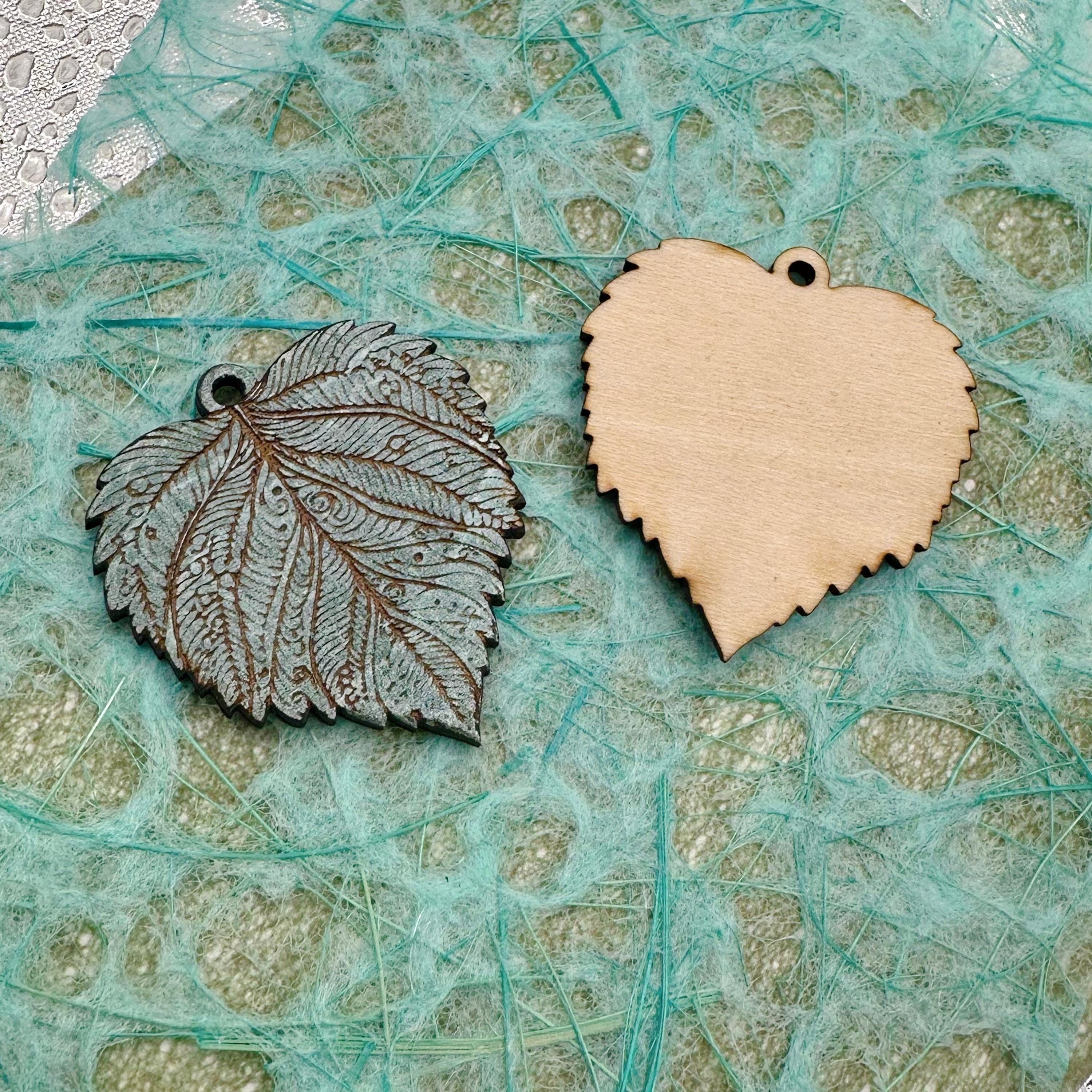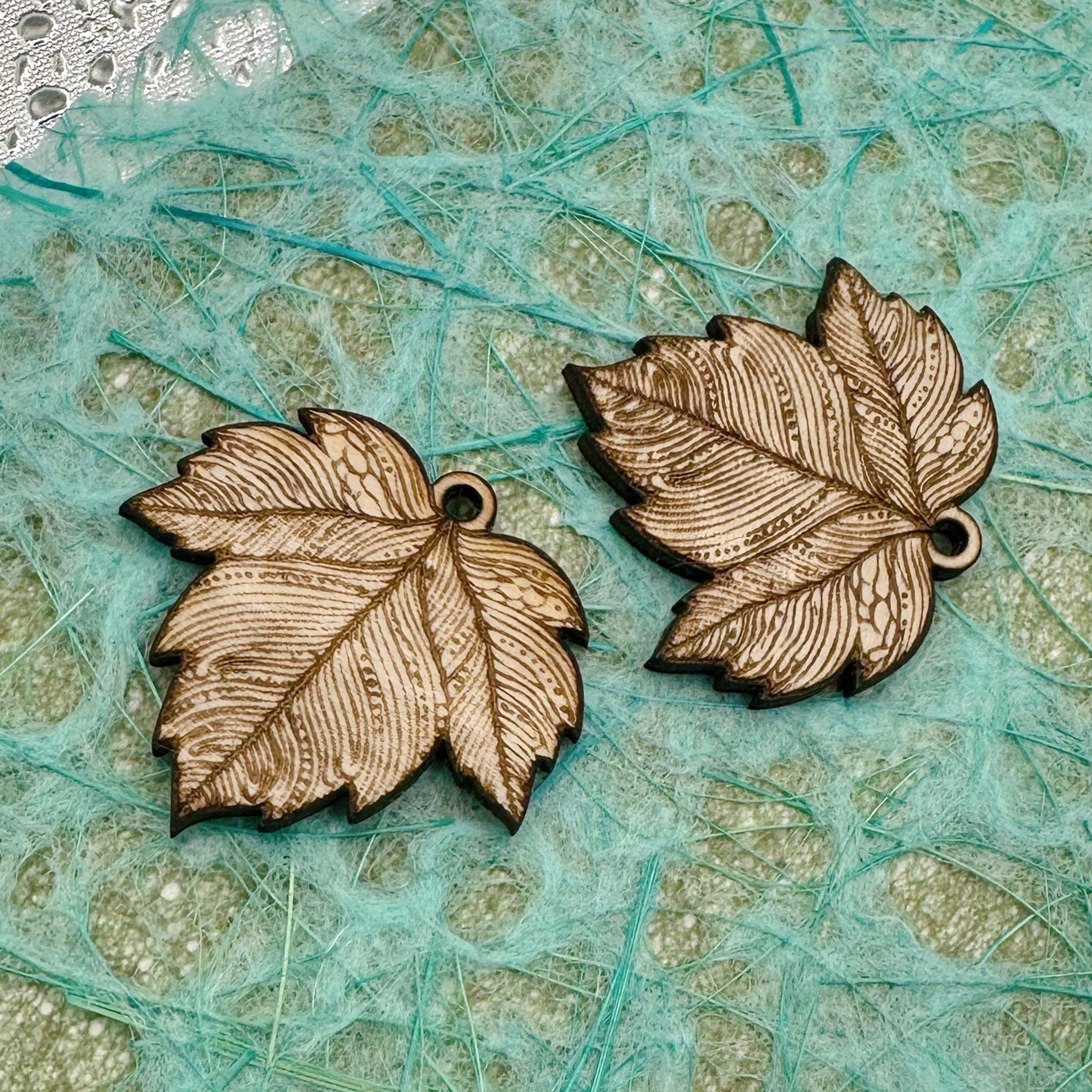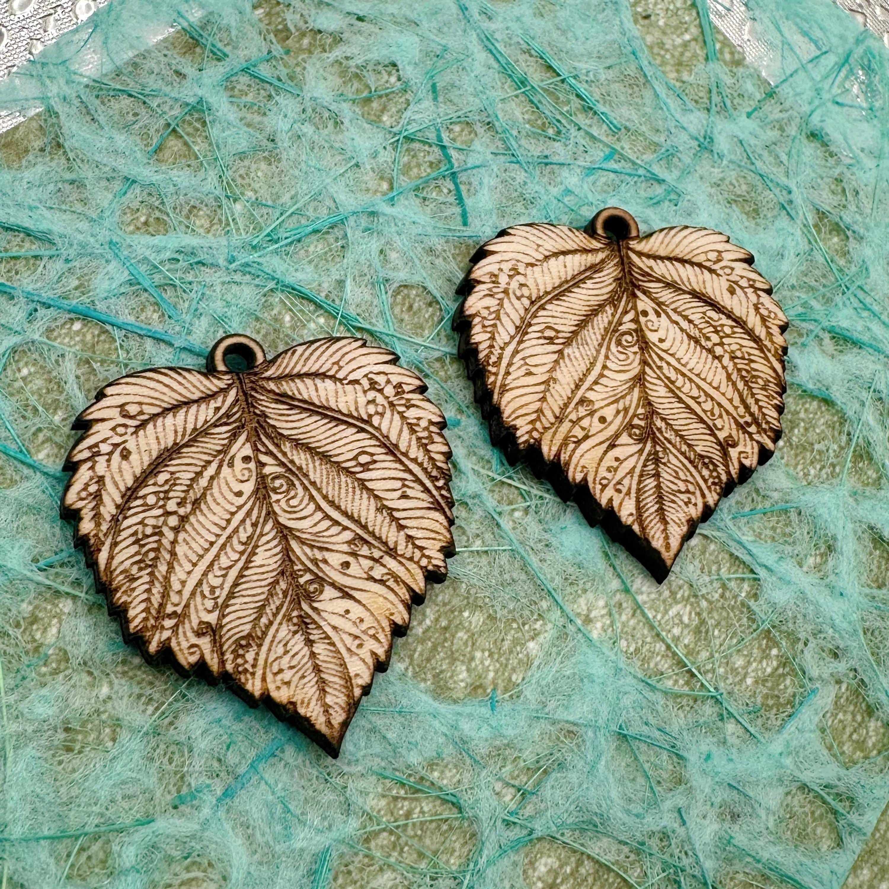 These laser engraved wood leaves make beautiful jewelry. They are cut from 3mm basswood and have a 2mm hole at the top for attaching to a jumpring or hoop. I usually paint them with acrylic paint pens- but you can use colored pencils, markers, paints… whatever you can imagine. The engravings are deep enough that it’s easy to “stay in the lines” or let the engraving show through your coloring. I can also customize these- so please reach out with any questions.
