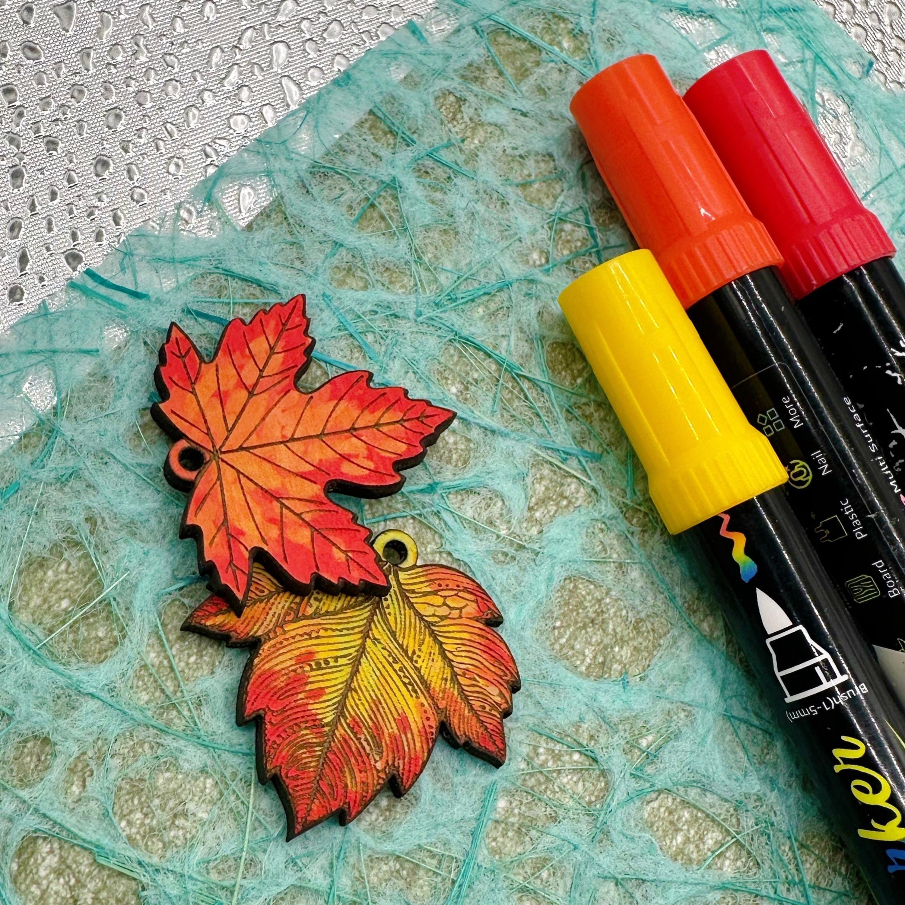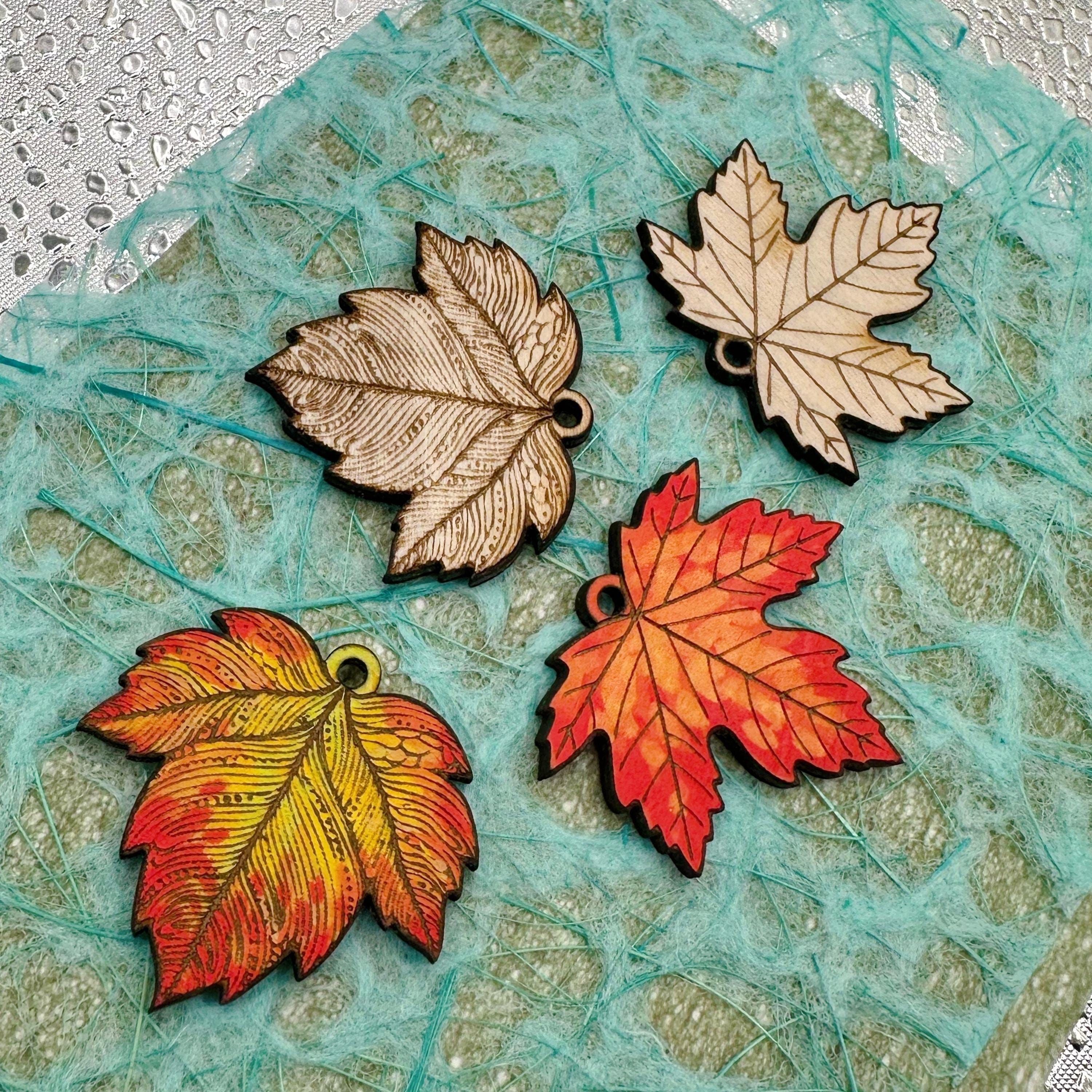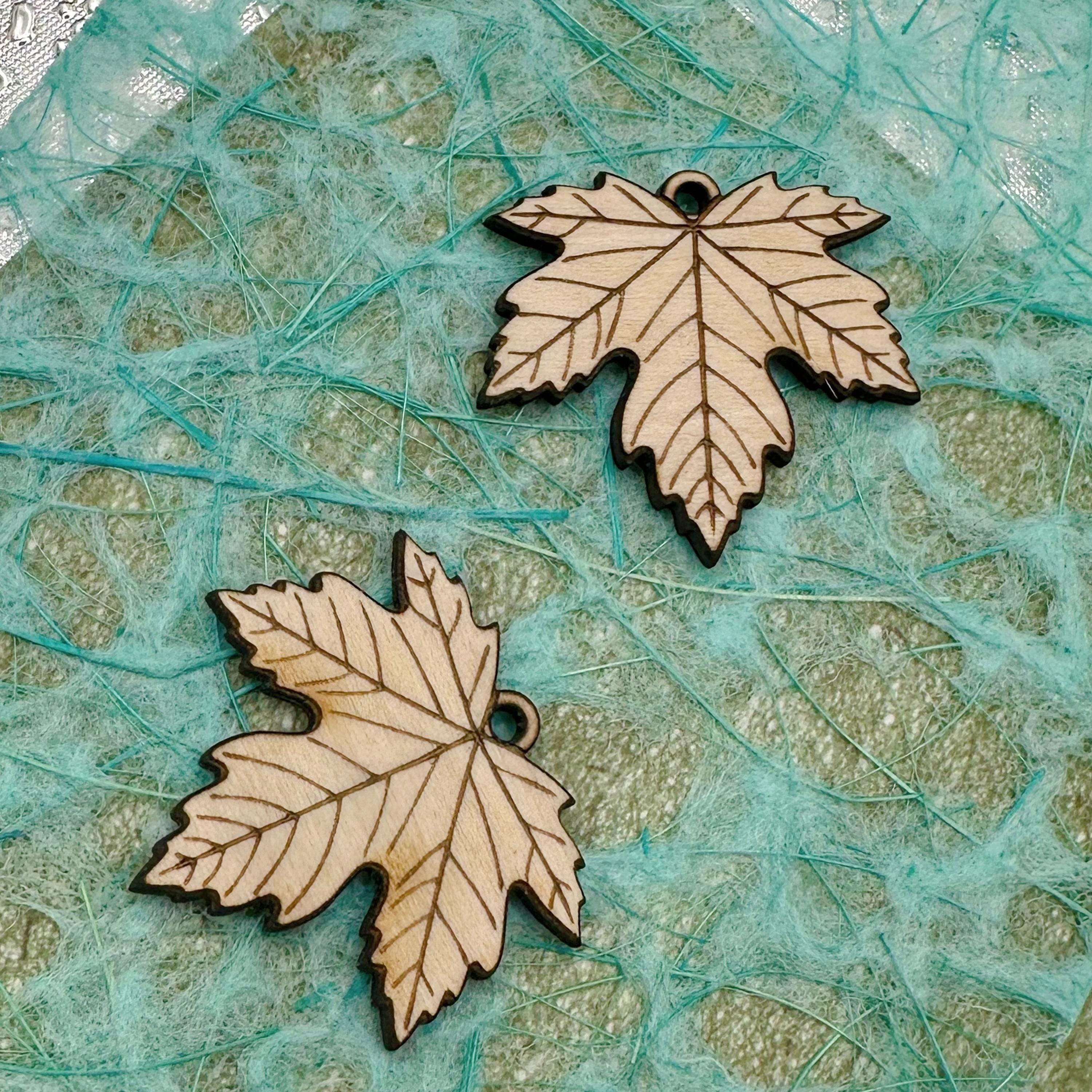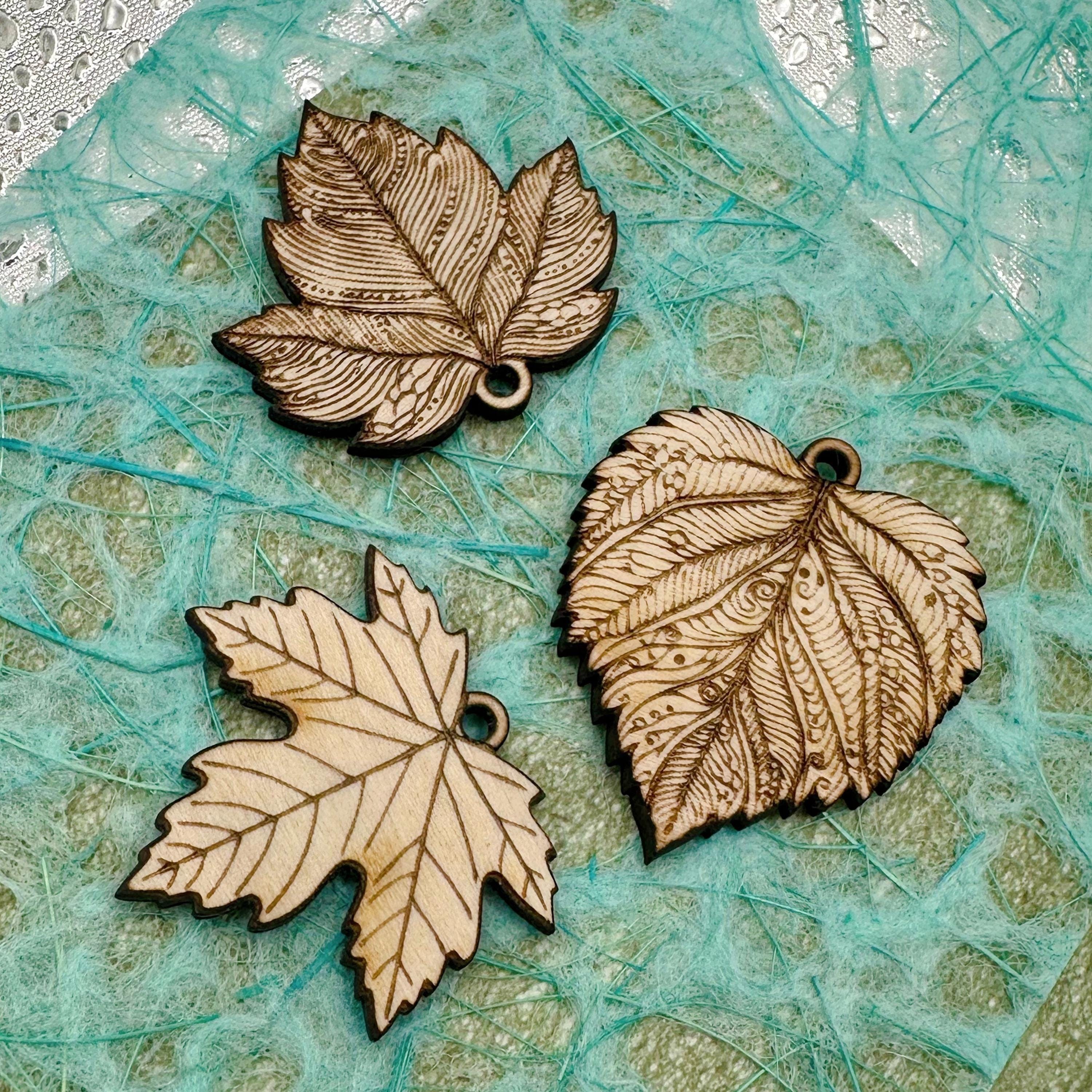 These laser engraved wood leaves make beautiful jewelry. They are cut from 3mm basswood and have a 2mm hole at the top for attaching to a jumpring or hoop. I usually paint them with acrylic paint pens- but you can use colored pencils, markers, paints… whatever you can imagine. The engravings are deep enough that it’s easy to “stay in the lines” or let the engraving show through your coloring. I can also customize these- so please reach out with any questions.
