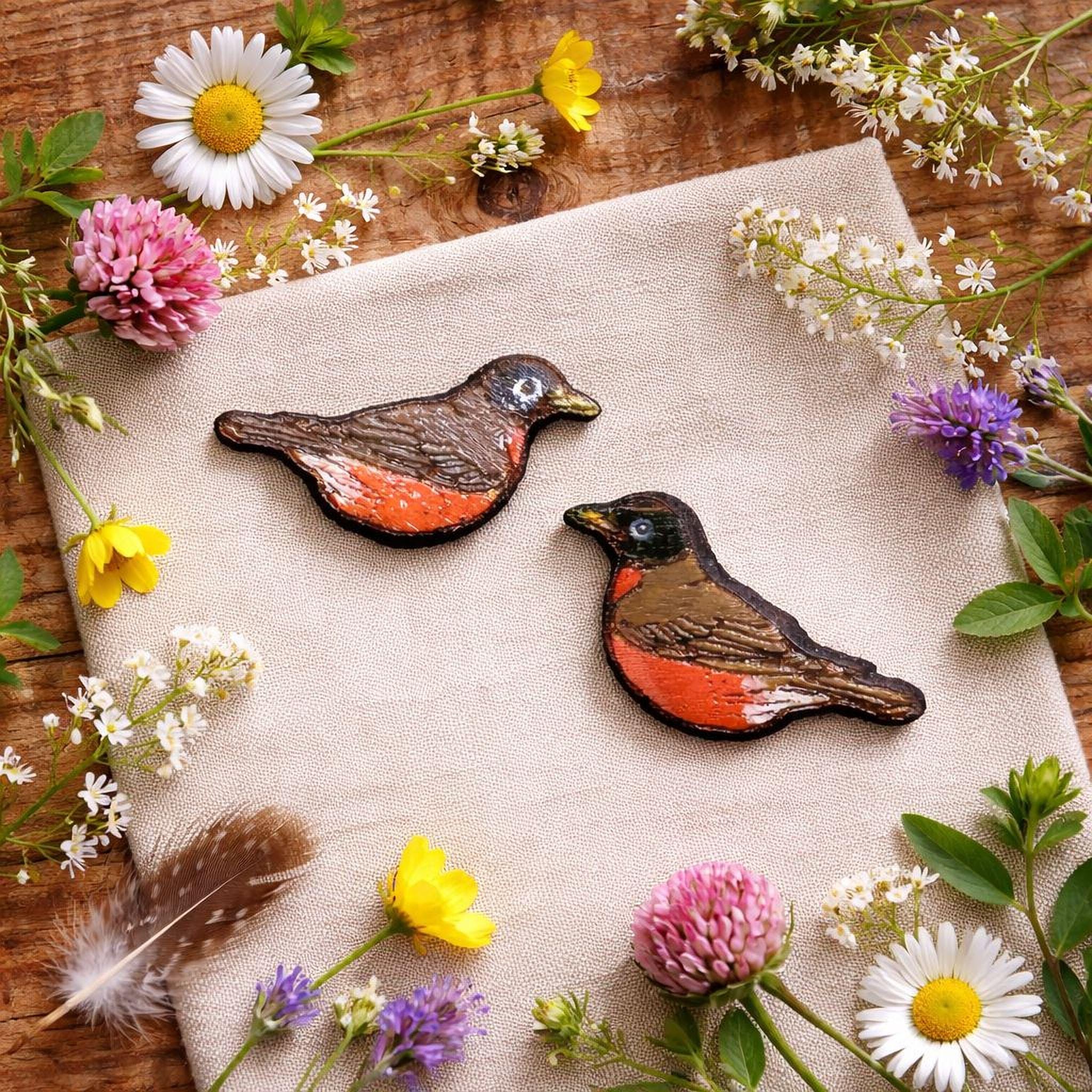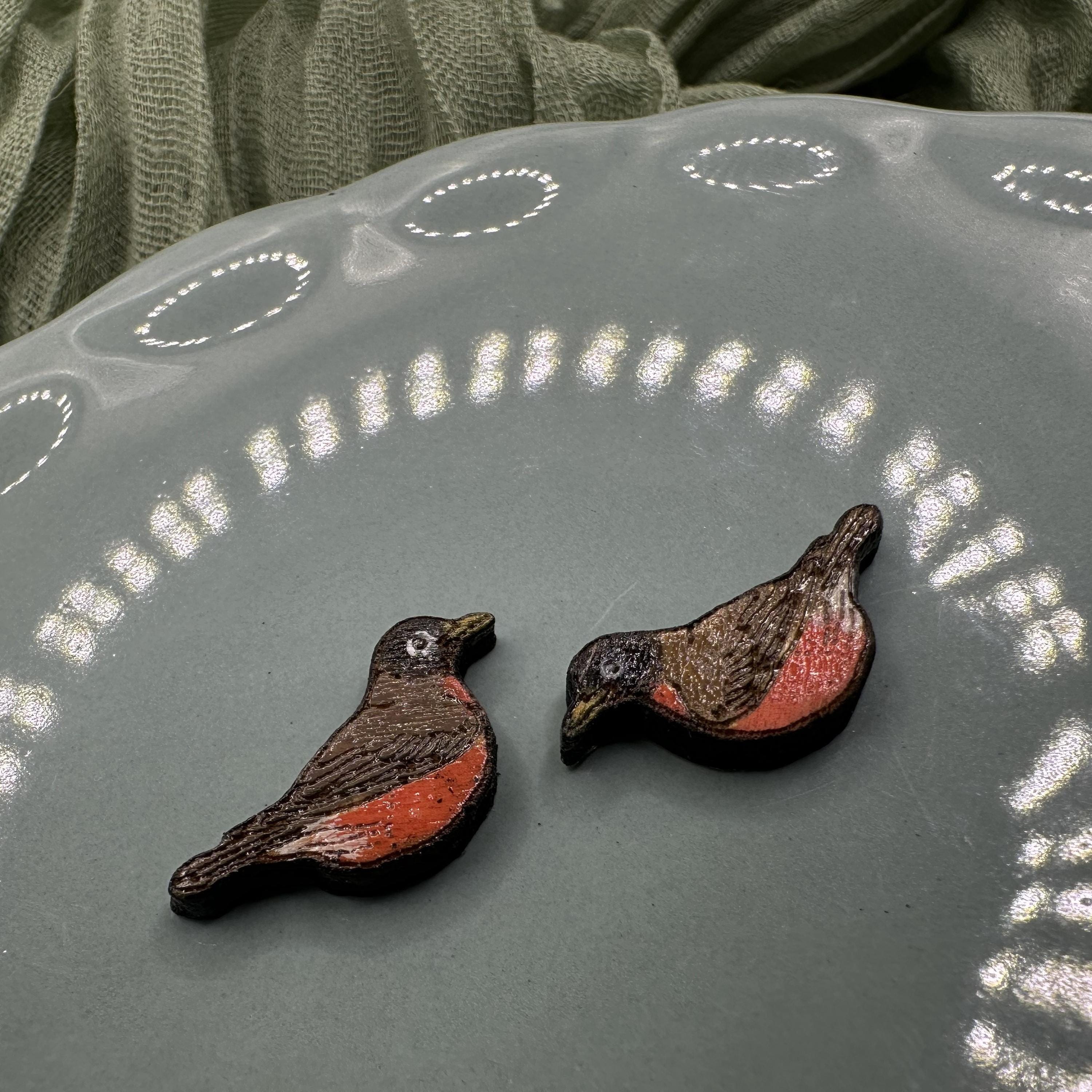 Because each pair is hand painted, no two robins are exactly alike, giving your earrings their own special personality.