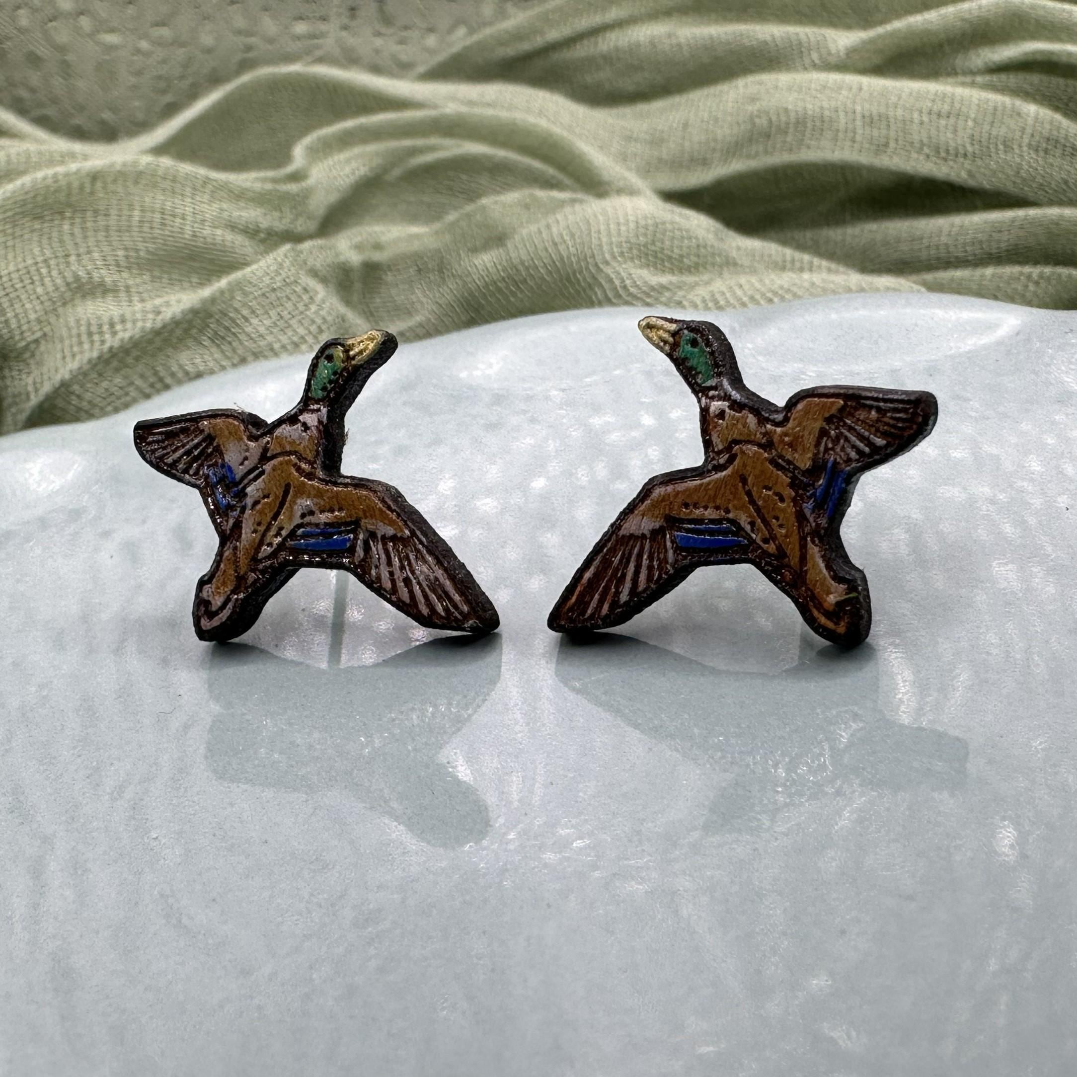 Discover the charm of nature with these delicate mallard duck stud earrings, perfect for any bird lover seeking a subtle yet meaningful accessory. Hand-painted with care, each pair captures the essence of wildlife through vibrant colors and fine details, making these wooden earrings a unique addition to your collection. Whether you’re drawn to the beauty of waterfowl or searching for a thoughtful bird lover gift, these lightweight studs bring a touch of the outdoors wherever you go.